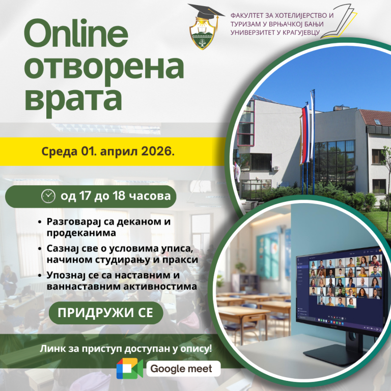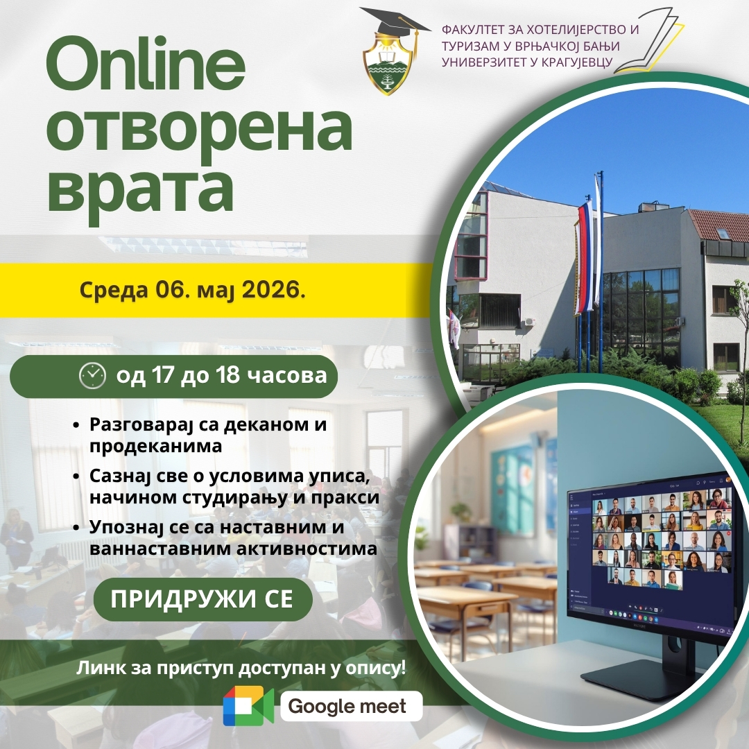 Факултет за хотелијерство и туризам у Врњачкој Бањи организовао је 3. и 4. фебруара 2026. године догађај у оквиру пројекта Међународног вишеградског фонда „Оснаживање мрежа отворених иновација у туризму”. Догађај је окупио представнике академске заједнице из земље и иностранства, стручњаке из области туризма, као и кључне актере иновативног екосистема.