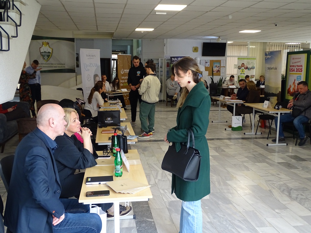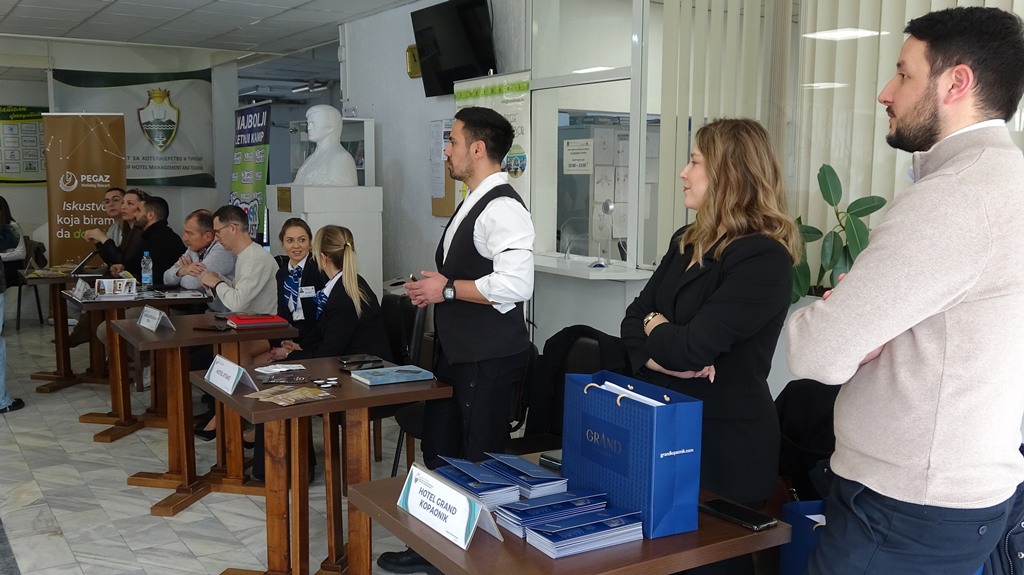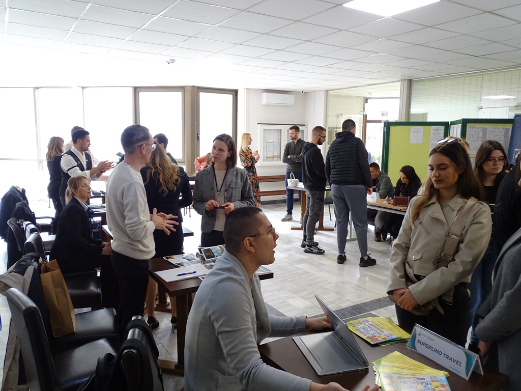У динамичној и инспиративној атмосфери, послодавци су студентима представили своје програме стручне праксе, могућности професионалног усавршавања и потенцијалног запослења. Штандови су били место живих разговора, размене контаката и конкретних информација о раду у сектору хотелијерства и туризма.