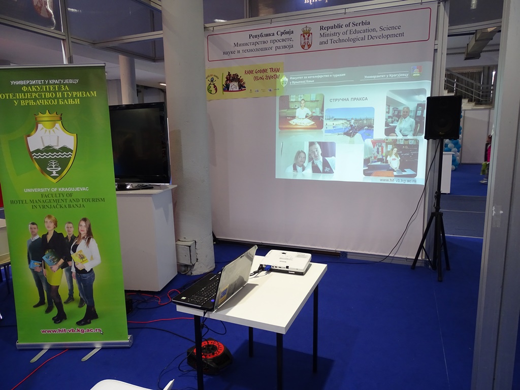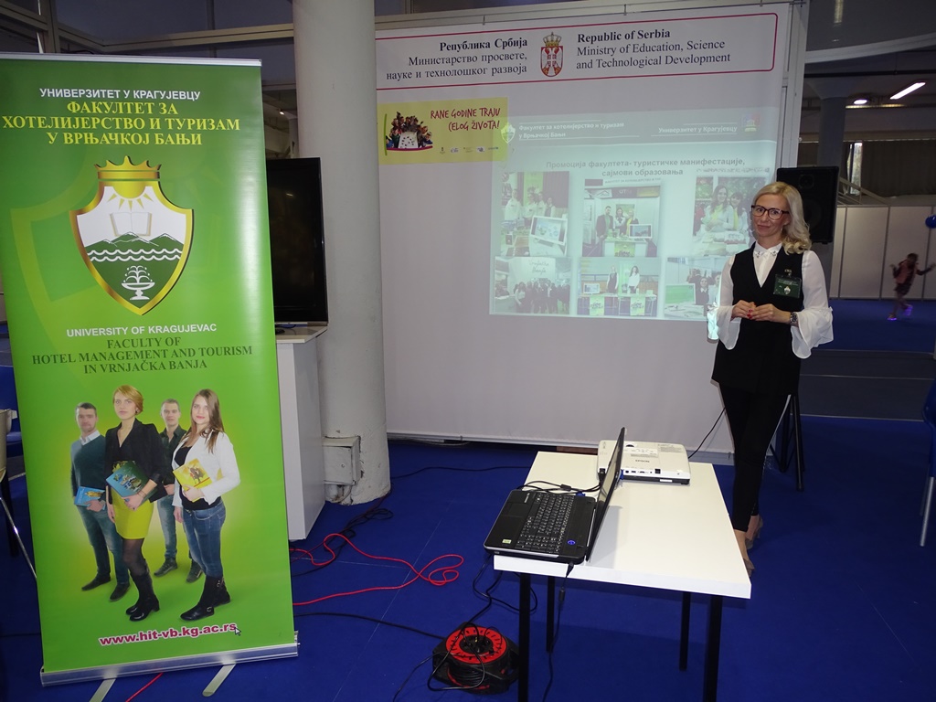 На штанду Министарства просвете, науке и технолошког развоја, покровитеља Сајма, међу бројним високошколским институцијама, свој рад, студијске програме као и примере добре праксе представио је и Факултет за хотелијерство и туризам у Врњачкој Бањи, Универзитета у Крагујевцу.